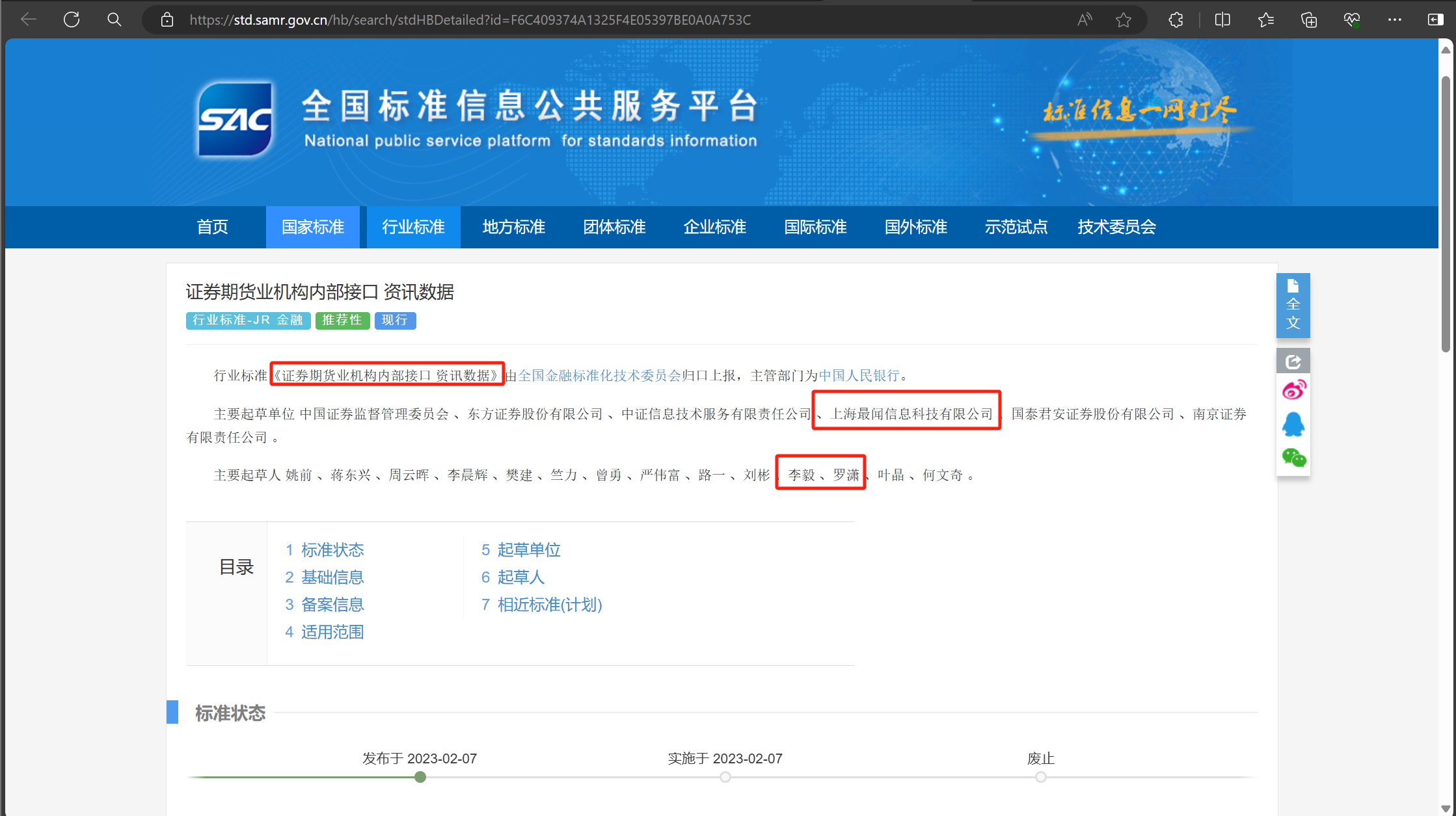 常聞科技(原最聞科技)作為起草單位的《證券期貨業(yè)內(nèi)部資訊數(shù)據(jù)接口標(biāo)準(zhǔn)》正式發(fā)布!