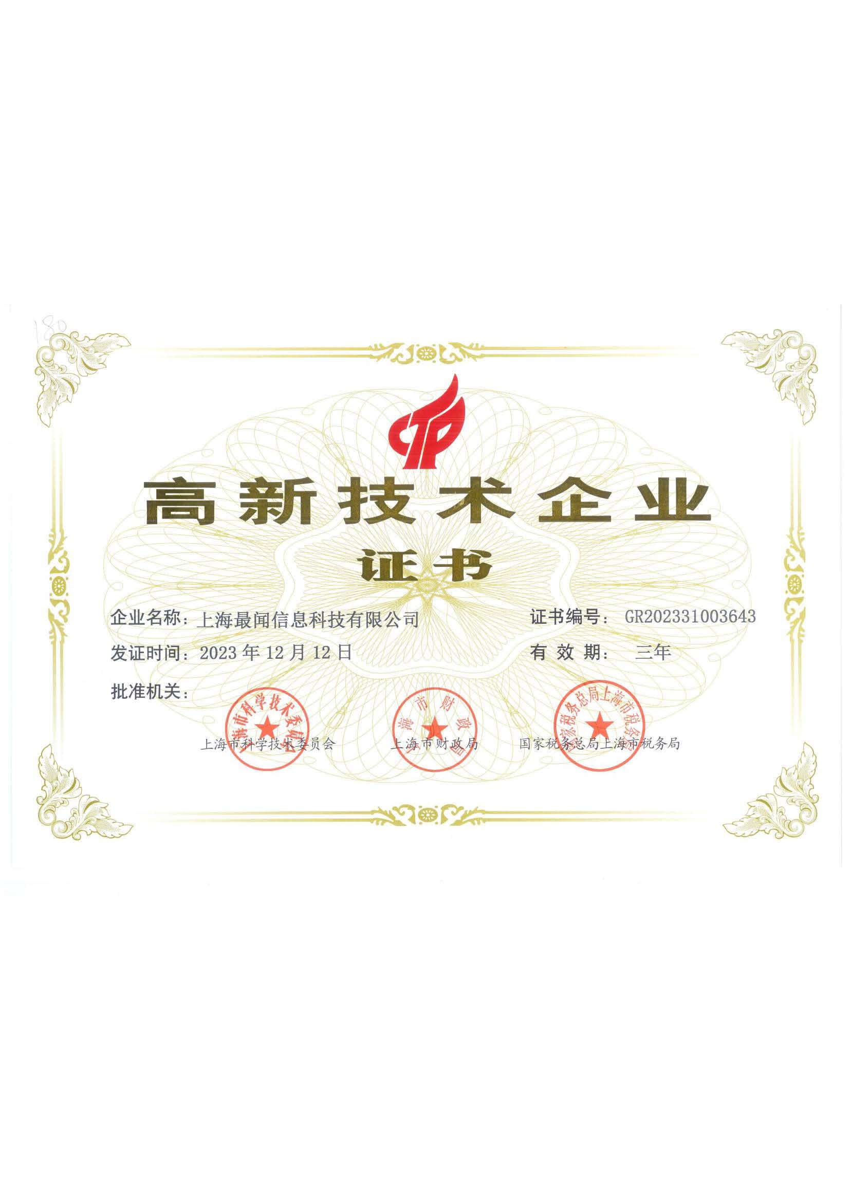 高新技術(shù)企業(yè)證書
